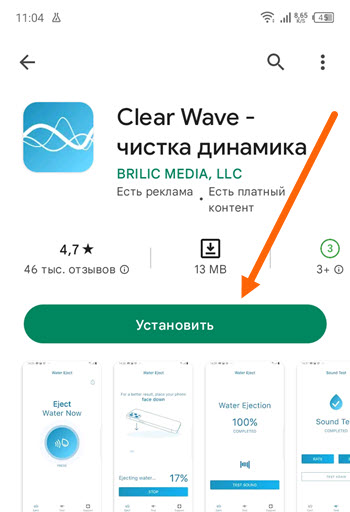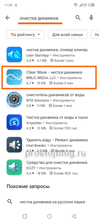 В найденных результатах, выбираем одно из приложений, например «Clear Wave».