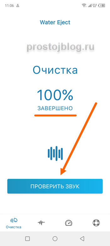 7. По завершению проверки, жмём на кнопку «Проверить звук».