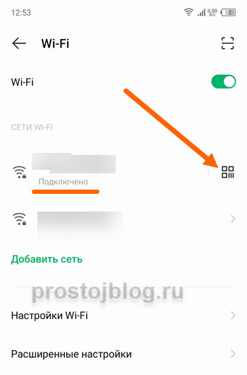 3. Напротив сети к которой подключен смартфон, имеется специальный значок, жмём на него.