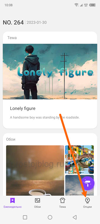 3. На открывшейся странице, жмём на кнопку «Опции», в правом нижнем углу.