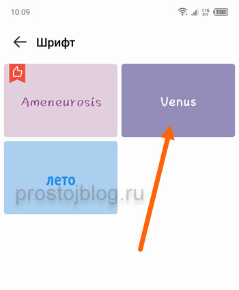 5. Жмём на понравившийся шрифт, я для примера выберу «Venus».