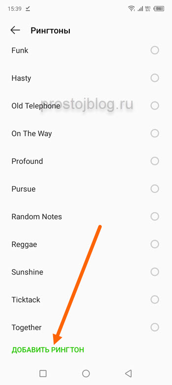6. Прокручиваем страницу с системными звуками в самый низ и жмём на кнопку «Добавить рингтон».