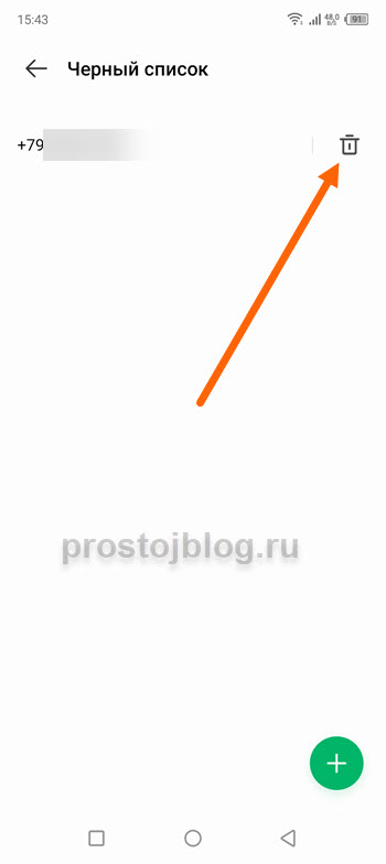 6. В открывшемся окне, указано что мы вновь будем принимать смс сообщения и вызовы от этого номера, если всё устраивает, жмём на кнопку «Удалить».