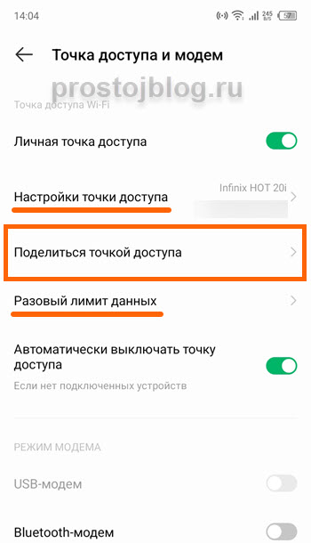Так-же можно нажать на пунт «Поделится точкой доступа».