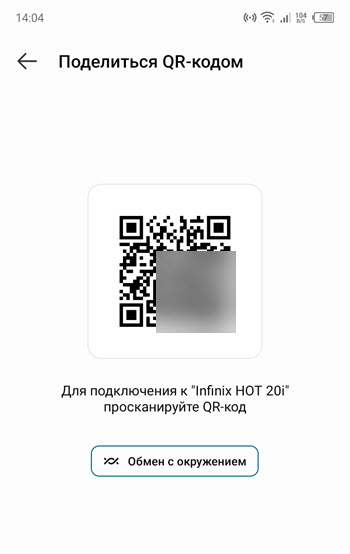 5. После чего откроется QR код, который можно отсканировать на принимающем устройстве.