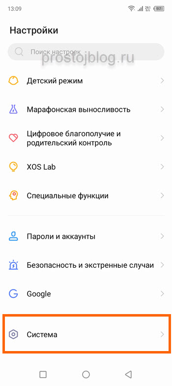 2. Спускаемся в самый низ страницы, и переходим в раздел «Система».