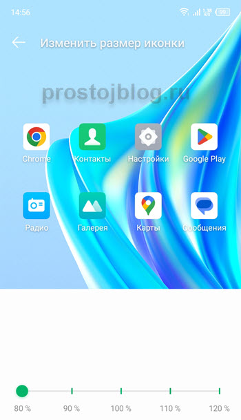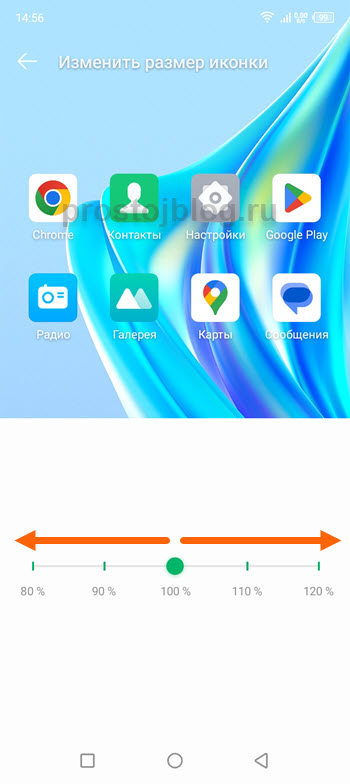5. По умолчанию имеется размер в 100%, можно его регулировать как лево, так и вправо.