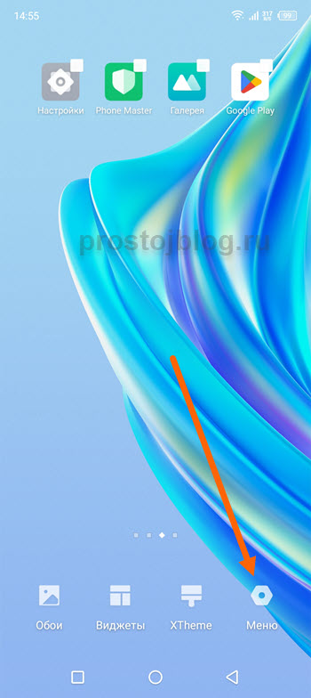 2. В появившейся внизу строке, жмём на кнопку «Меню».