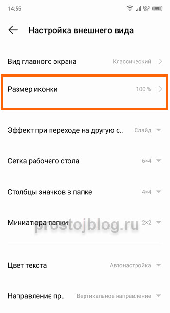 4. На вновь открывшейся странице, жмём на второй пункт сверху «Размер иконки».