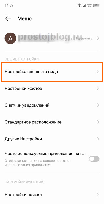 3. На открывшейся странице, жмём на пункт «Настройка внешнего вида».