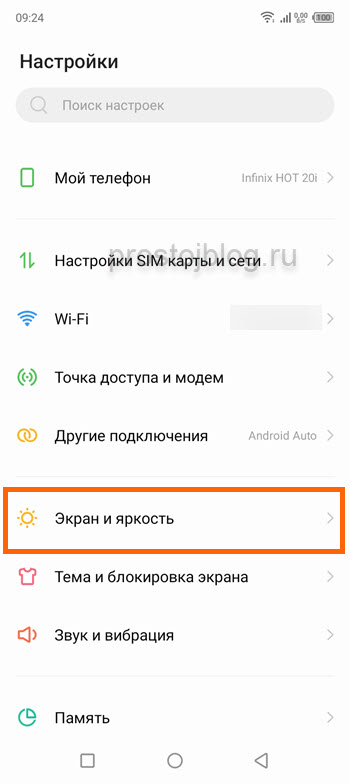 2. Далее переходим в раздел «Экран и яркость».
