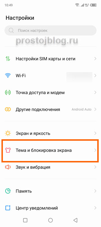2. Далее переходим в раздел «Тема и блокировка экрана».