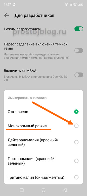 5. В открывшемся окне, выделяем «Монохромный режим».