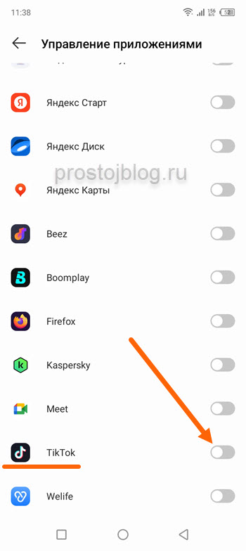6. Находим их в общем списке, и активируем ползунок напротив.