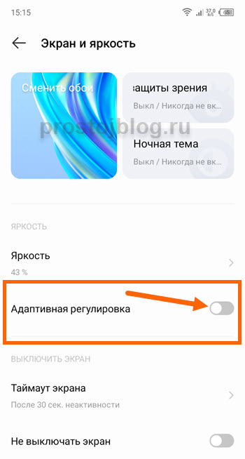 3. Находим пункт «Адаптивная регулировка» и деактивируем его.