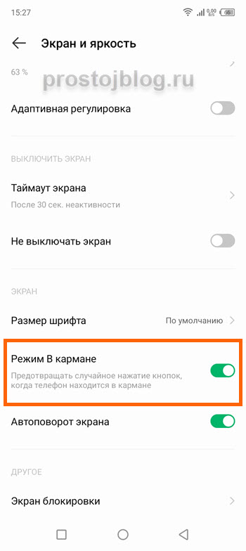 Чтобы данная неурядица случалась как можно реже, разработчики внедрили в систему Андроид специальный режим, который так и называется «В кармане».
