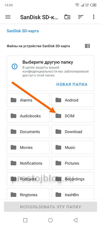 5. Далее необходимо выбрать нужную папку «DCIM».